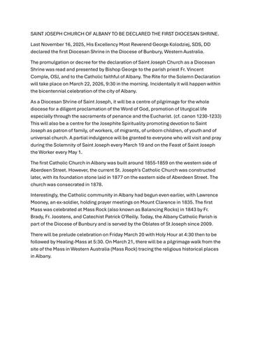 250116 – Bunbury Diocese – St Joseph Church of Albany to be declared the first diocesan shrine.pdf