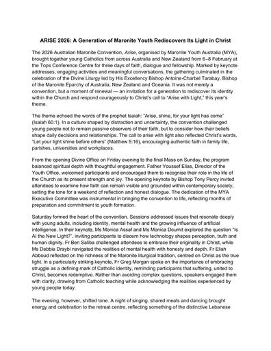 7. 250216 – Maronite Eparchy – ARISE 2026: A Generation of Maronite Youth Rediscovers Its Light in Christ