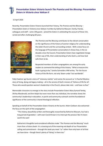 260415 -Presentation Sisters Victoria – Presentation Sisters Victoria launch The Promise and the Blessing_Presentation Sisters in Victoria since Vatican II.pdf
