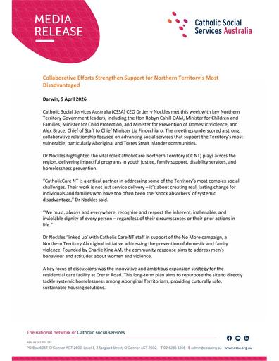 7. 260409 – CSSA – Collaborative Efforts Strengthen Support for Northern Territory’s Most Disadvantaged