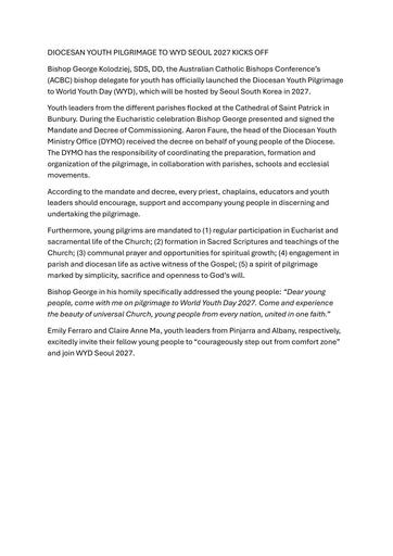 260420 – Bunbury Diocese – Diocesan Youth Pilgrimage to WYD Seoul kicks off.pdf