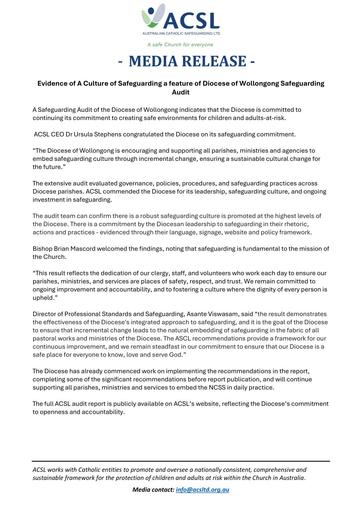 260408 – Evidence of A Culture of Safeguarding a feature of Diocese of Wollongong Safeguarding Audit – ACSL.pdf
