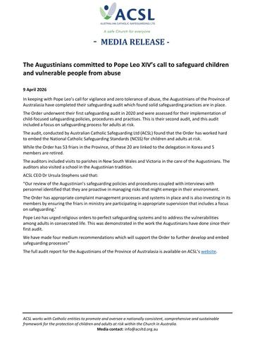 260409 – The Augustinians committed to Pope Leo XIV’s call to safeguard children and vulnerable people from abuse – ACSL.pdf