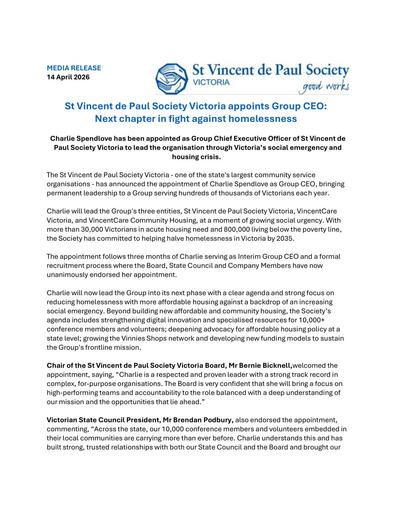 260414 – St Vincent de Paul Society Victoria – St Vincent de Paul Society Victoria appoints Group CEO.pdf