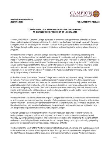 pdf 260316 – Campion College – Campion College appoints Simon Haines as Distinguished Professor of Liberal Arts