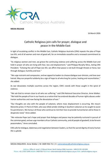260316 – CRA – Catholic Religious join calls for prayer, dialogue and peace in the Middle East.pdf