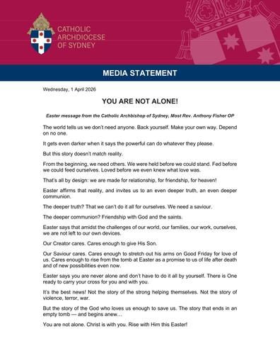 pdf 260402 – Sydney Archdiocese – Archbishop Anthony Fisher OP Easter Message 2026