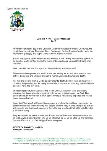 5. 260402 – Townsville Diocese – Bishop Tim Harris’s 2026 Easter Message
