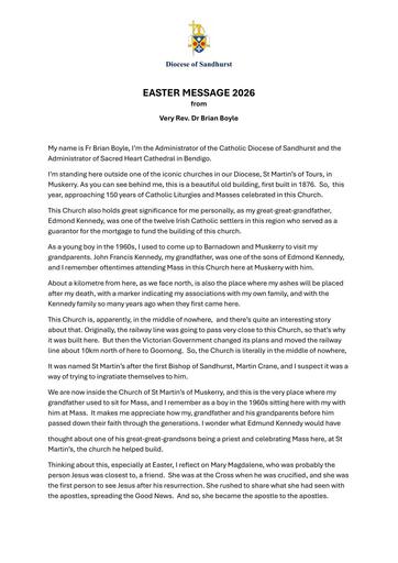 5. 260402 – Sandhurst Diocese – Administrator Fr Brian Boyle 2026 Easter Message
